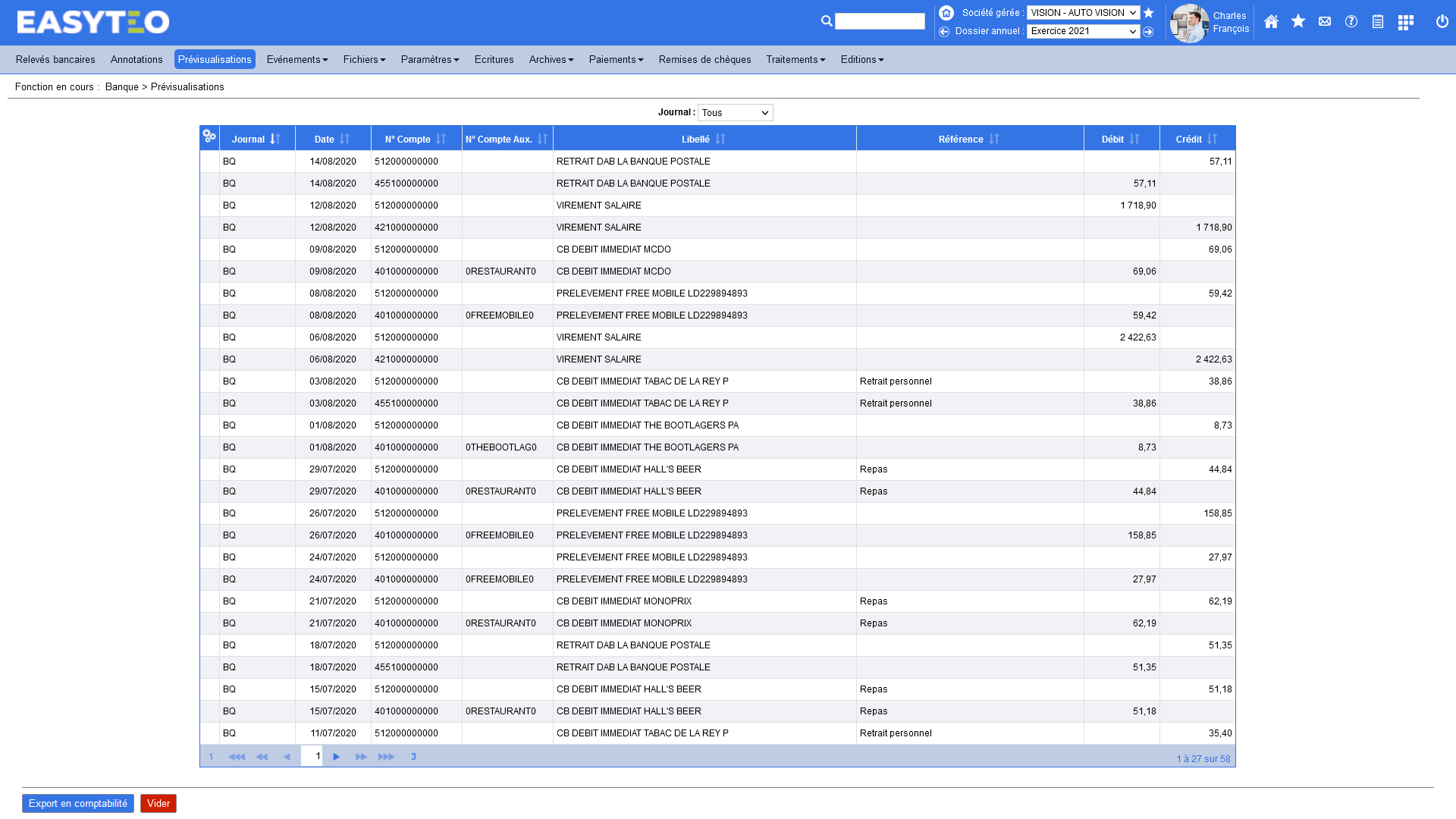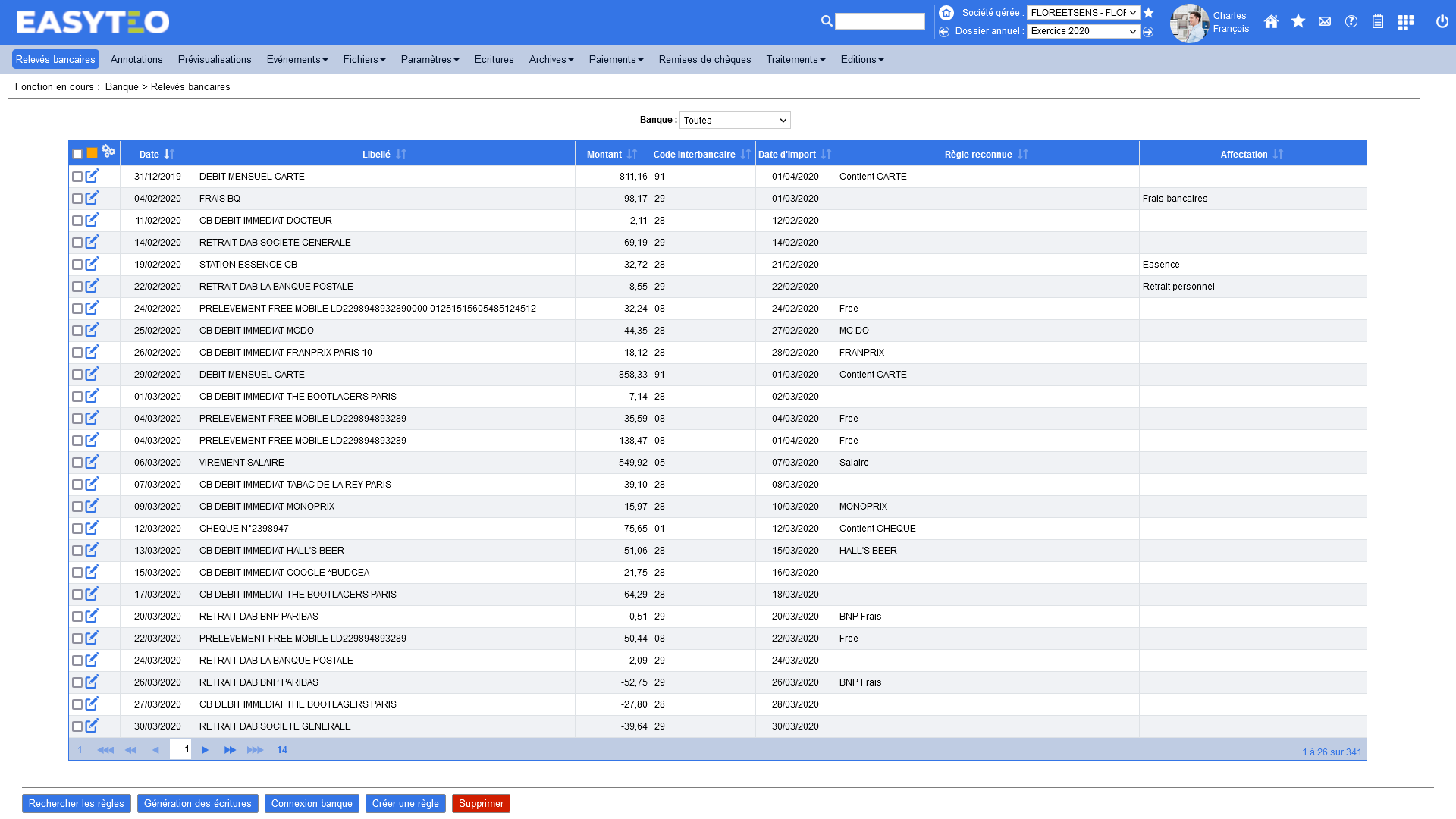 - Génération automatique ou manuelle des écritures comptables avec conservation des détails des lignes de relevés bancaires