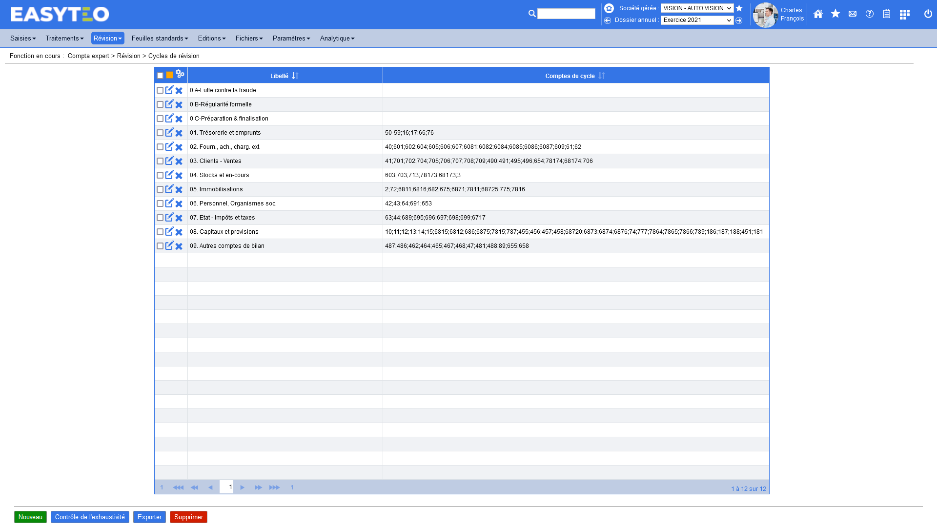 - Date de dernière modification et nom de l’utilisateur ayant effectué la modification (si l’écriture a été modifiée)