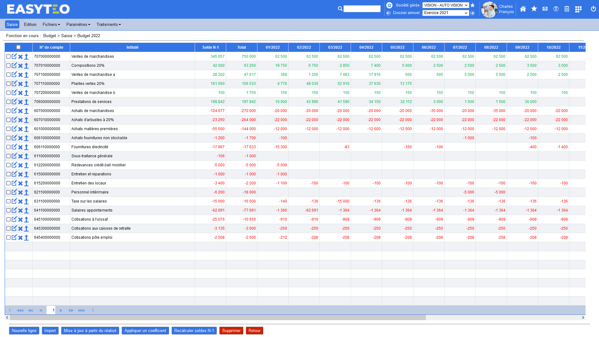 - Remplacement des valeurs par le réalisé de l'exercice en cours à une date choisie