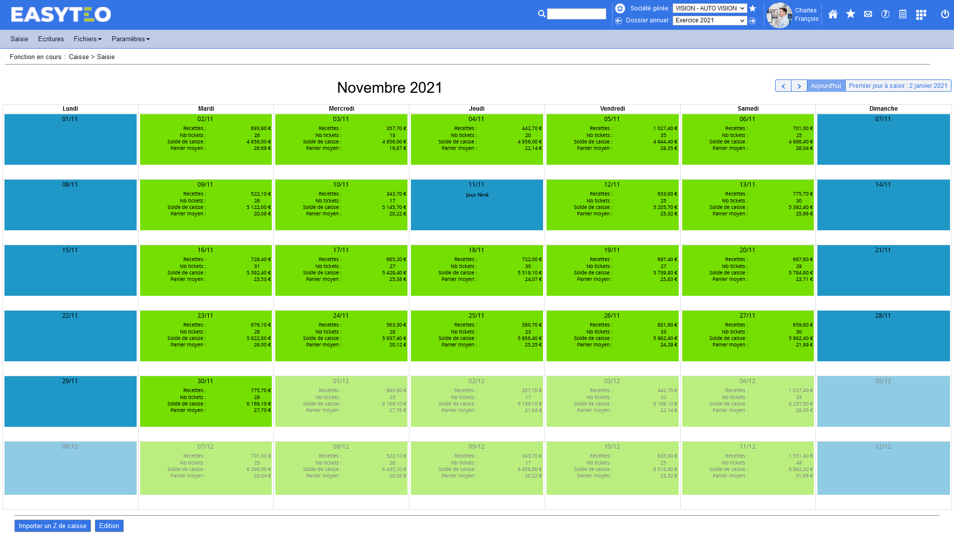 - Saisie des Z de caisse avec gestion des :